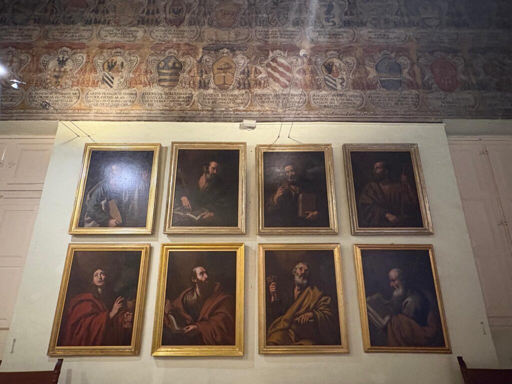 Various Inquisitors over the years made substantial changes to the building, so much so that there’s barely a trace of the earlier courthouse (just a small courtyard and cloister). The palace absorbed neighbouring properties over the years. Earthquakes were another reason for changes and rebuilding. Eventually, it took on the appearance of a Roman palazzo, with Baroque influences.