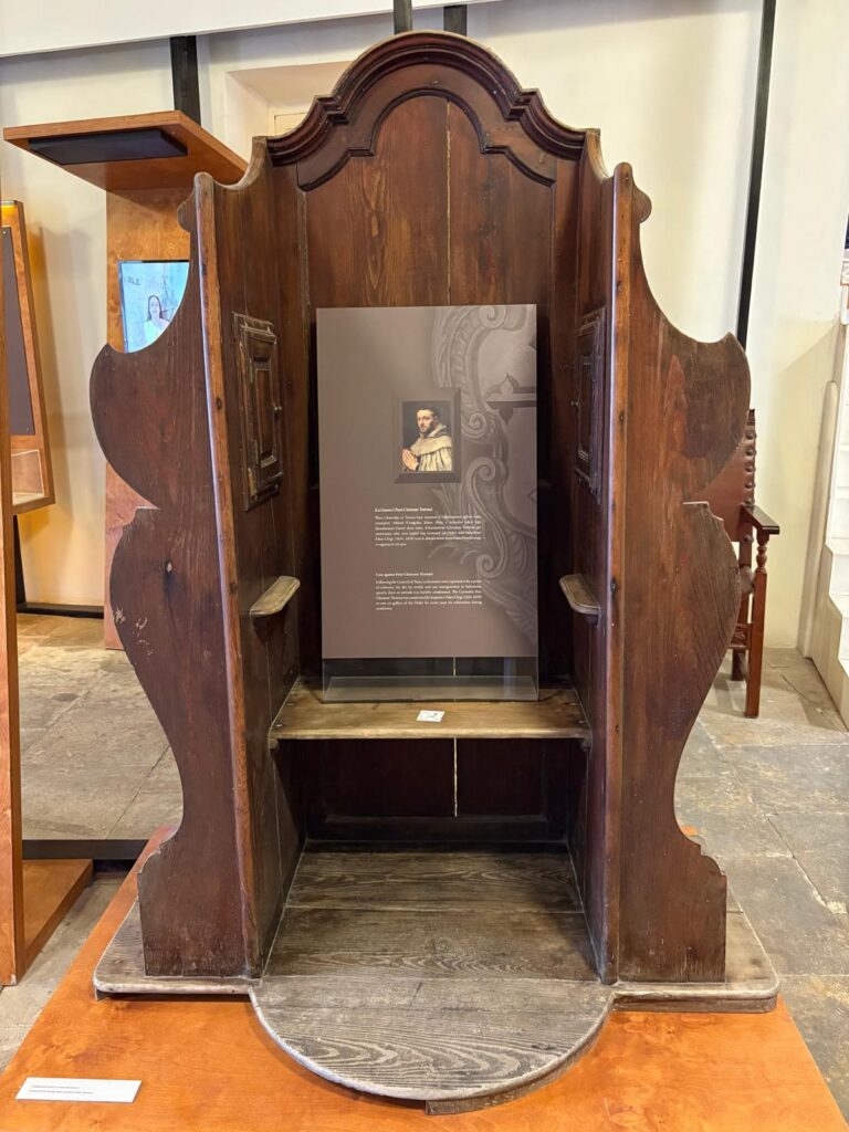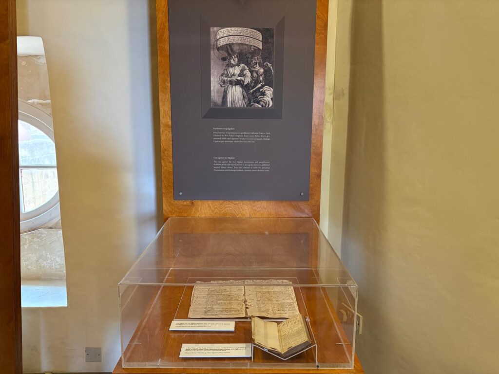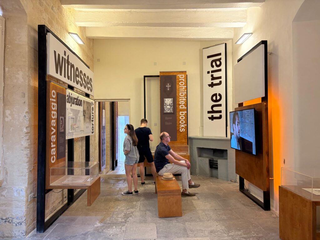 The area I found most interesting was that which told the story of the tribunals held here. This part has been brought up to museological standards more recently than the rest of the museum. There are few objects which directly tell the story, but some archival materials on view. Personal stories are used where possible to bring the work of the Inquisition to life. This includes those two Quaker women, Katherine Evans and Sarah Cheevers. There’s also a bit about Caravaggio’s testimony. This section does a good job of explaining to a modern audience what it was like to be subject to religious authorities in all aspects of life, in a way not common now in Christian countries.