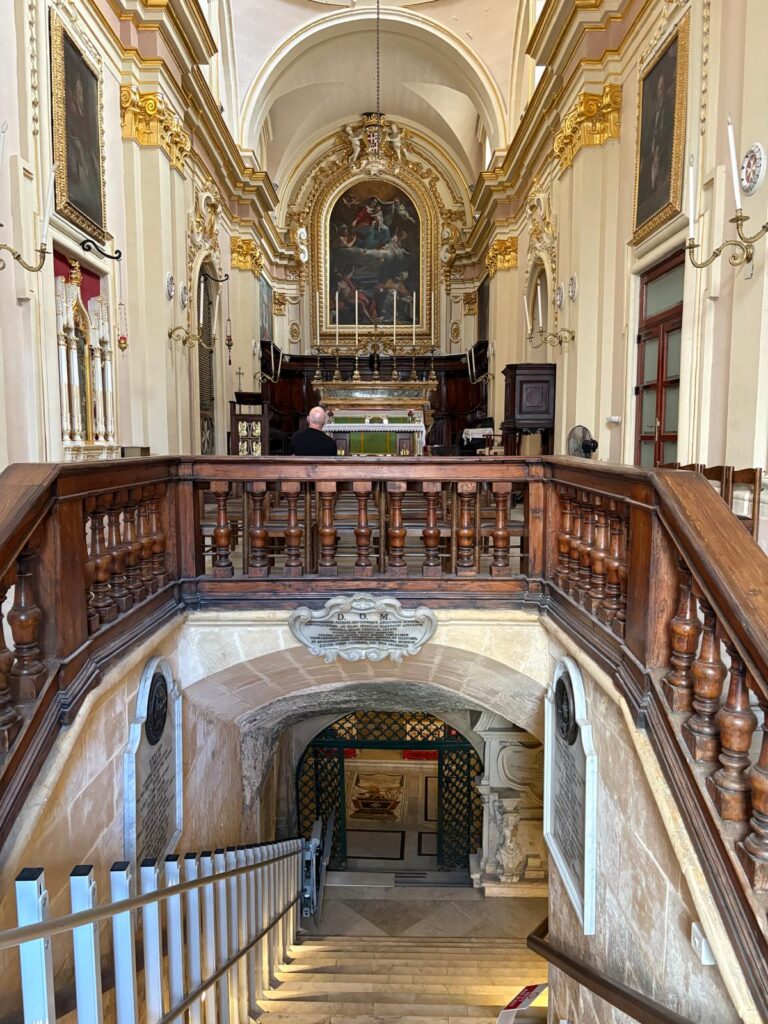 Wignacourt set up a college with chaplains to care for the grotto, and made Benegas its rector. This raised the status of the church above the grotto to that of a collegiate church. I’m a little confused about the churches, actually. But I think the situation is that there is a Church of St Paul and a Church of St Publius. The former has been around since at least medieval times, although the current building is the work of Maltese architect Lorenzo Gafà and built between 1653 and 1683. Our friend Benegas apparently ordered the construction of the Church of St Publius annexed to the Church of St Paul, and through which one enters the grotto. The current version of that church dates to 1726. You can see why I’m a bit confused.