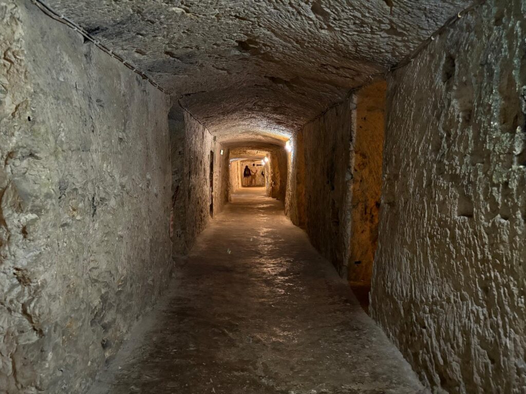 But some of the tunnels look decidedly newer. Those are WWII-era bomb shelters. Malta was very hard hit by bombing, and shelters were critical to protecting the population. These tunnels had about 50 rooms, sheltering around 350 people. We also went to Underground Valletta during our stay, another site of mixed WWII and older underground spaces. The residents here in Rabat were comparatively comfortable compared to those damp and miserable tunnels.