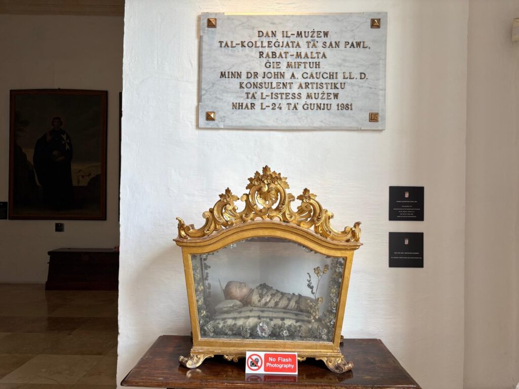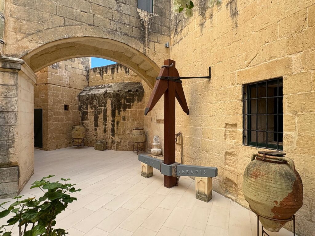 In the corner of that room is one of the blind exits that seemed mysterious back at the start of our journey, in the underground catacombs and tunnels. I wasn’t quite sure why I could climb a staircase and get a glimpse of a room, but not enter it. Now it feels like a full circle moment. I wouldn’t say the Wignacourt Museum makes a lot of sense to me, even now. But I liked it. It’s charming, has genuinely interesting displays, and is a generous museum, too. Three for the price of one, by the time you count the grotto, the tunnels, and the museum itself. The uniqueness of the site, and the different historic elements and periods all abutting each other, seem like Malta in a nutshell.