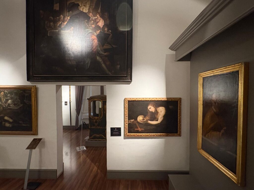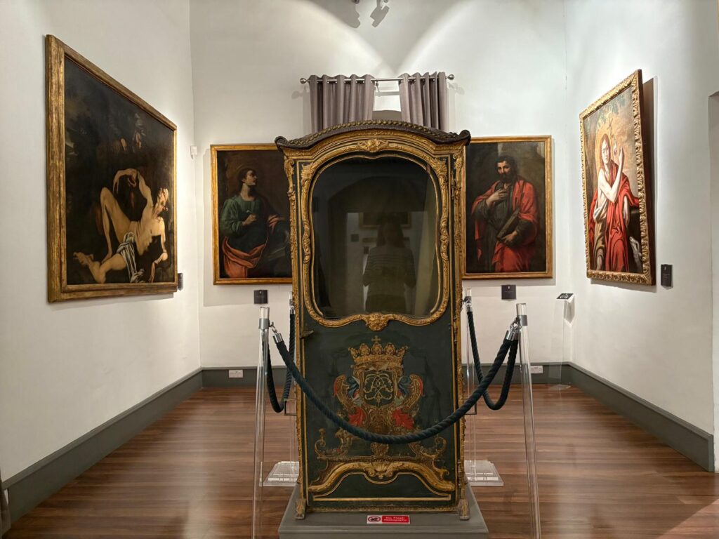 Let’s start with the notary I mentioned, Francesco Catania, whose bequest makes up about a third of the collection. And that’s despite the bulk of what he left to St Paul’s Collegiate Church being auctioned off after his death in 1962. Like Olof Gollcher, Catania was a collector of broad interests. The museum displays paintings, prints, maps, archaeological artefacts, coins, melitensia (meaning objects from or related to Malta), and artworks produced by Catania himself. There are some good examples of Baroque painters we’ve encountered before, like Antoine Favray and Mattia Preti.
