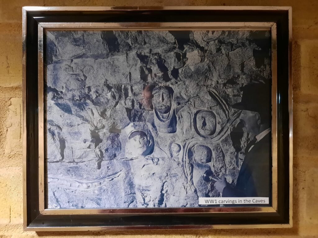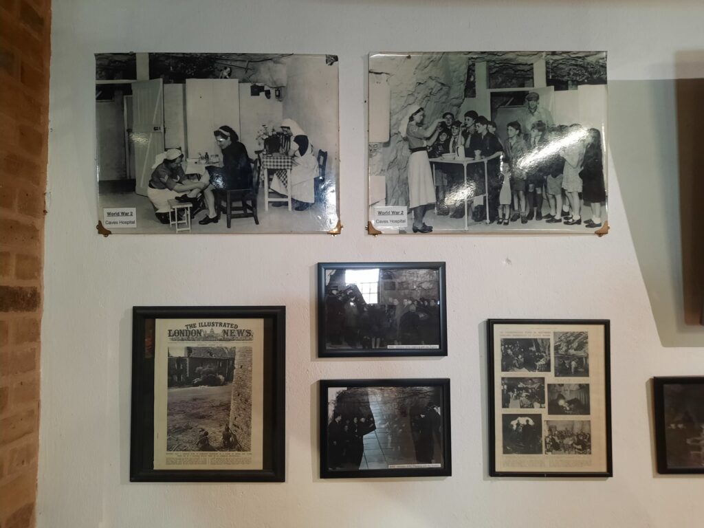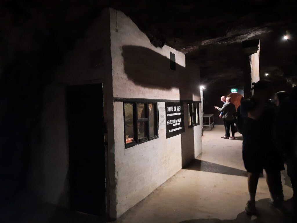 At the appointed time, our group set off underground. We saw the chapel and hospital, living quarters, and more. There was even a zombie for some reason. We saw artworks carved into the stone, and the ticket office where wartime residents could pay their weekly fee. Although the story told throughout the caves is mostly that of the air raid shelter, we also saw the stage from its life as a concert venue. It’s a very storied place and an interesting visit.