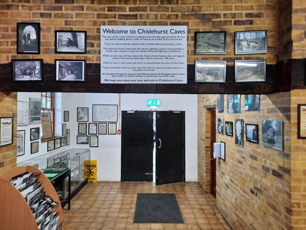 What about the visitor experience? Well, as I noted, the entrance is very close to Chislehurst Station, which is a good start. The Urban Geographer and I walked over from Bickley, which was more convenient for us. It was part of a day out in South East London where we visited some Open House London sights as well. Once we arrived at the visitor centre, we bought our tickets and started looking at the information and pictures crowding the walls. You may have noticed that all the images so far are from the visitor centre. There is a no photo policy inside the caves themselves. You can see some pictures old and new here.