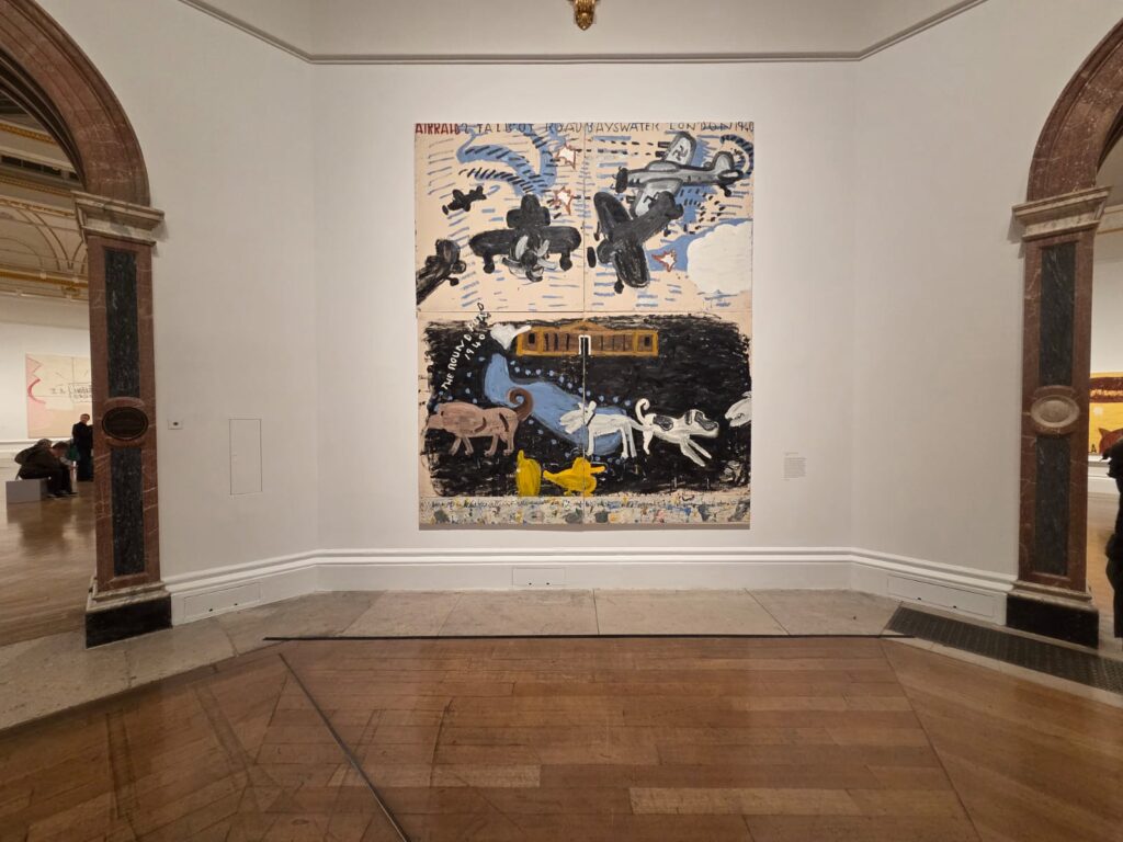 And I think that’s largely what the Royal Academy achieve here. Once you figure out the flow of galleries, there is a sense to the presentation. That first space contains paintings imbued with memories of those wartime bombings. The intersection of Rose Wylie the child and Rose Wylie who accesses memory, emotion and commentary through ‘childlike’ imagery. Then we see Room Project, the series that saw Wylie achieve new levels of renown. The works show the hand of an already confident artist, with her own vision and style.