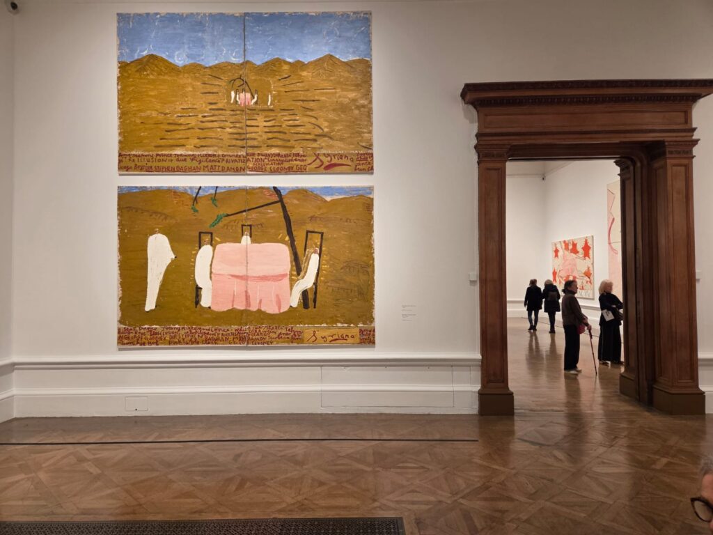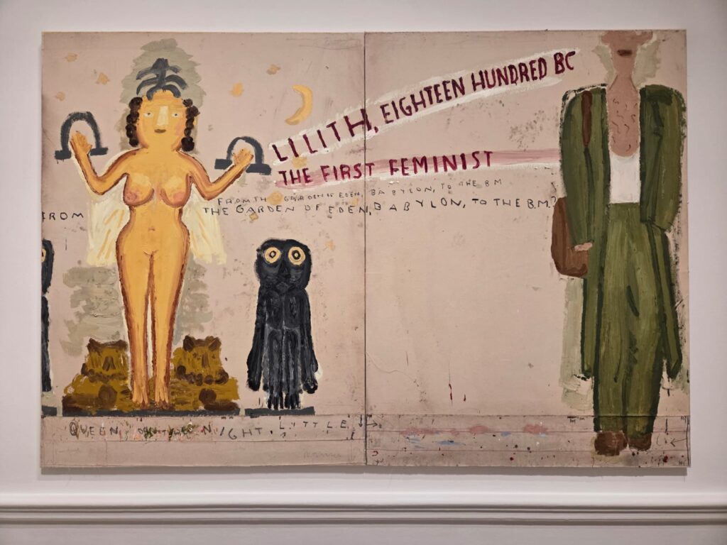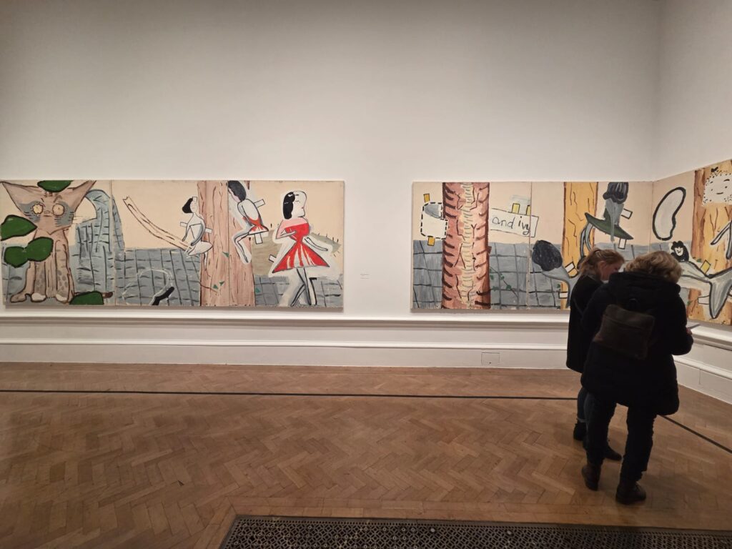 The other thing that defied my expectations was that the information appeared to be quite… matter of fact, maybe? Not too much interpretation of Wylie’s work, other than noting the sources and a bit of helpful context. Is it that Wylie’s paintings are accessible enough that you don’t need dense art historical write ups? Perhaps. Although don’t be fooled by the fact that she uses the visual language of children’s art. There’s a lot more going on besides. Maybe it’s also that a retrospective is best when it presents key works from across an artist’s career, and lets them speak for themselves.